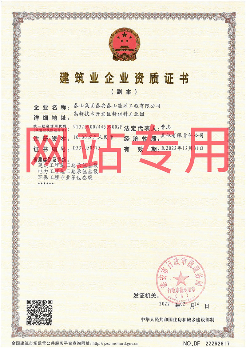建筑工程施工總承包叁級(jí)、電力工程施工總承包叁級(jí)、環(huán)保工程專(zhuān)業(yè)承包叁級(jí)